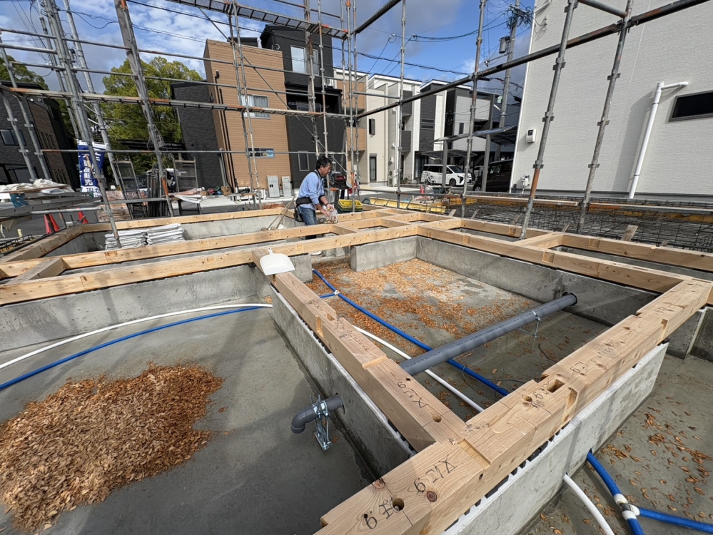 【建築現場レポート】耐久性・安全性の基盤となるとっても重要な工事「土台敷」の様子をお届けします!